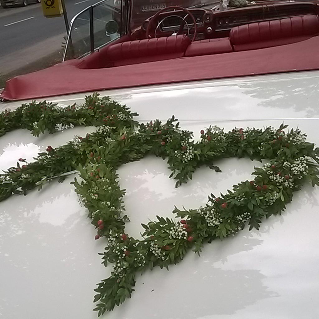 Bei der "Kutschfahrt" im Traumauto darf der Autoschmuck nicht fehlen.